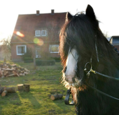 Wir sind Liebhaber der Pferderasse "Tinker" (Gypsy Horse aus Irland und England) und besitzen einen Tinkerwallach dieser Rasse.